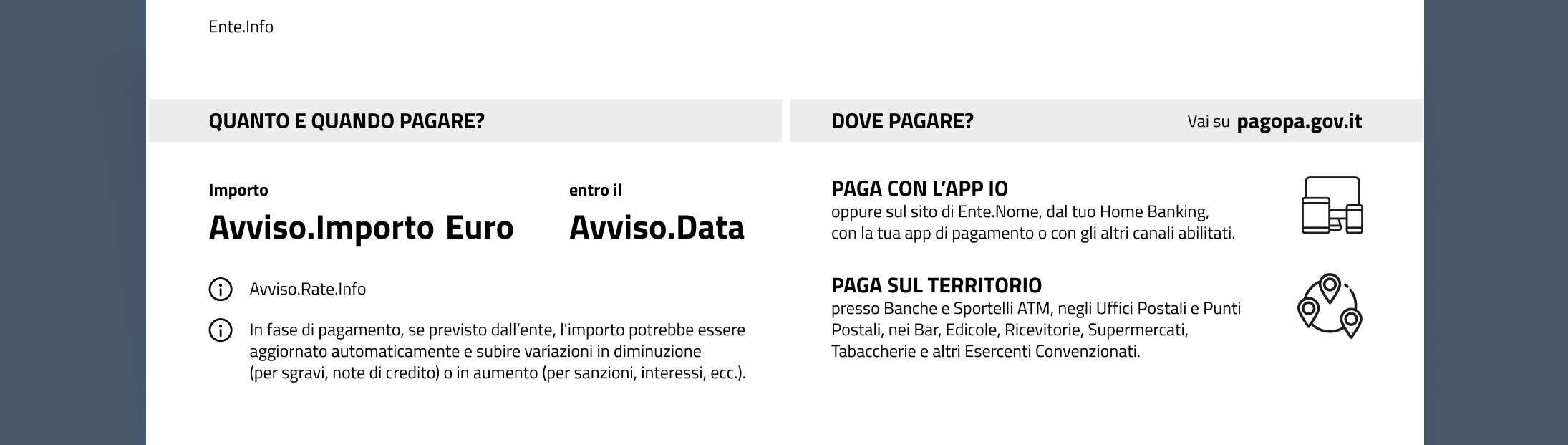 È la sezione che presenta i diversi canali dove poter pagare un avviso pagoPA, online e sul territorio.