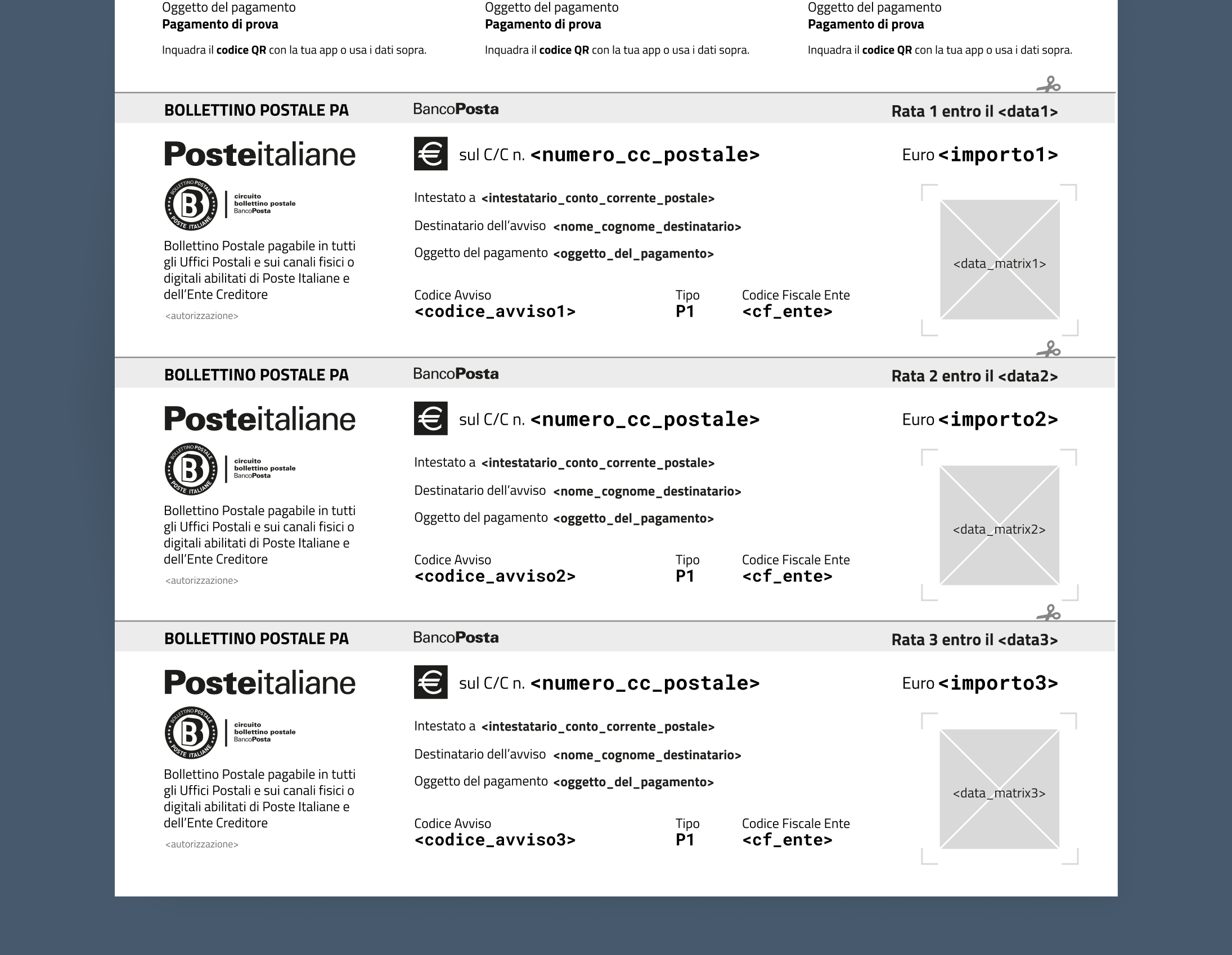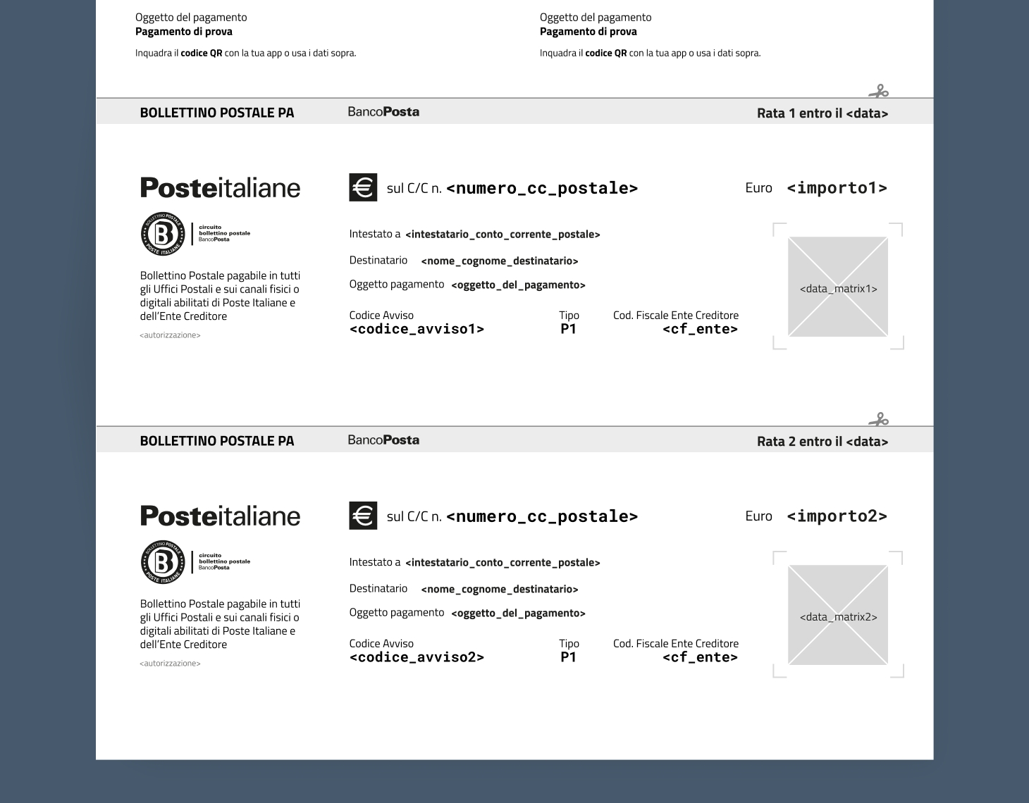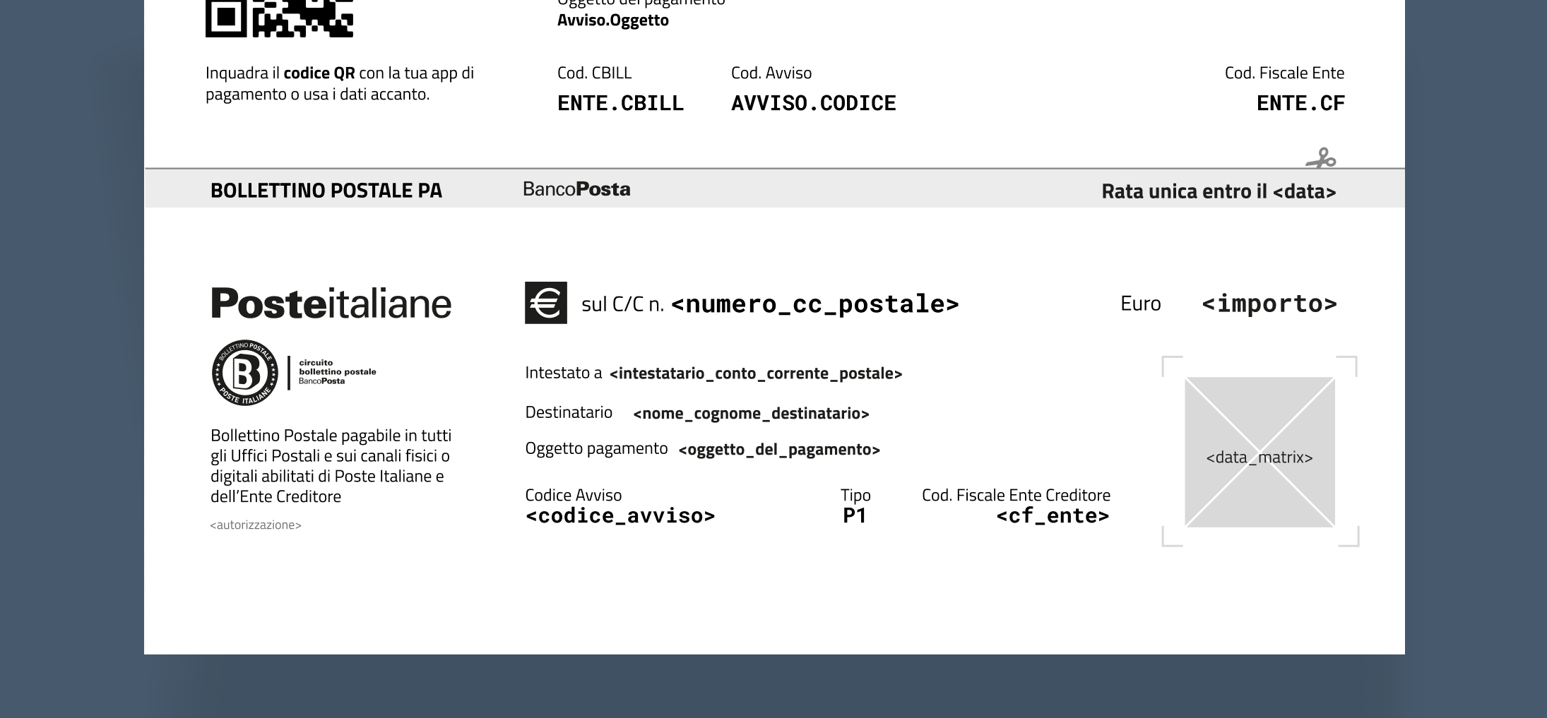 Se l'Ente Creditore dispone di un conto corrente postale per gli incassi, è necessario includere anche il Bollettino Postale PA.
