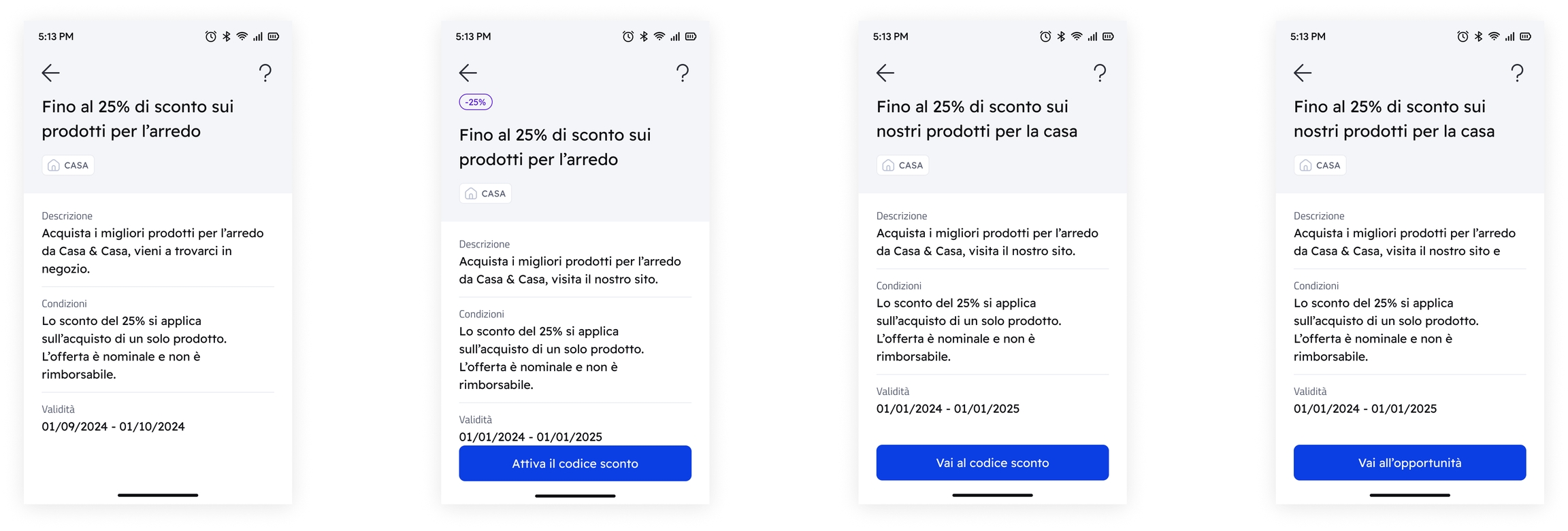 l’elenco delle opportunità in corso di validità erogate dall’Operatore;