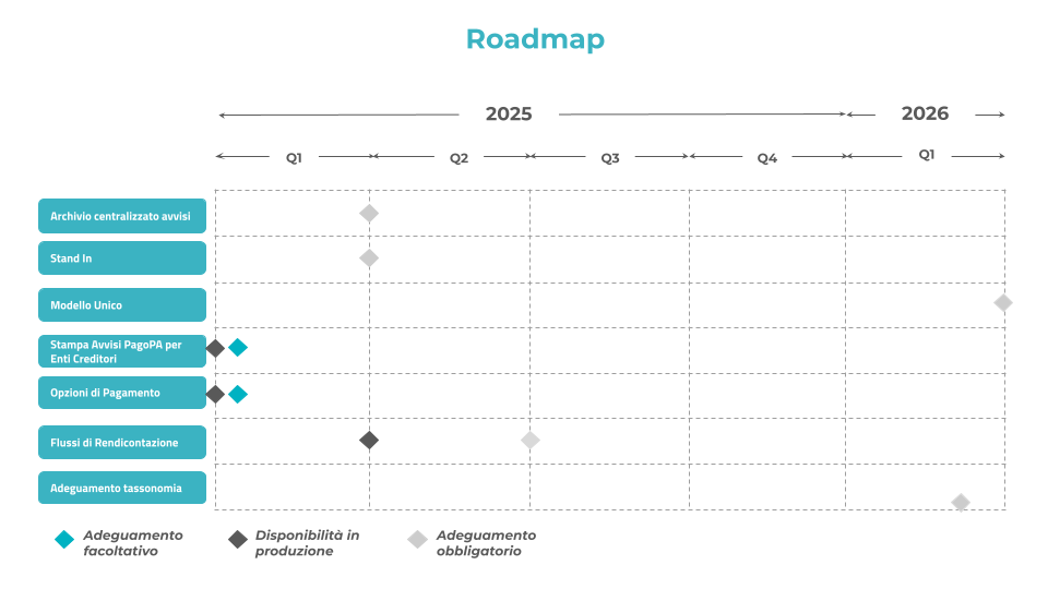 ### [Opzioni di pagamento -->](https://docs.pagopa.it/circolare-trimestrale/inizia-da-qui/roadmap/opzioni-di-pagamento)