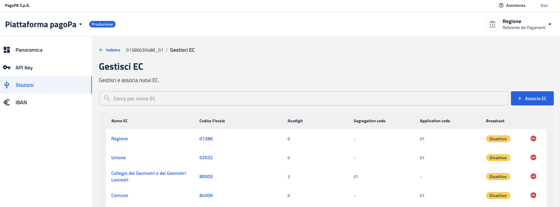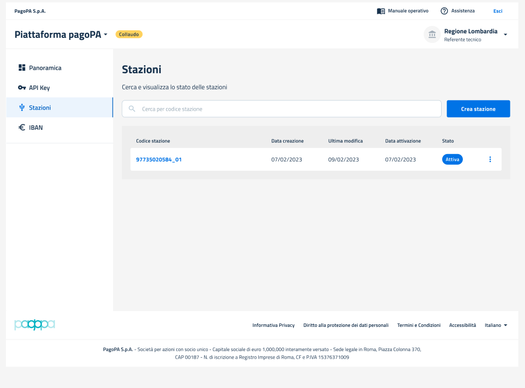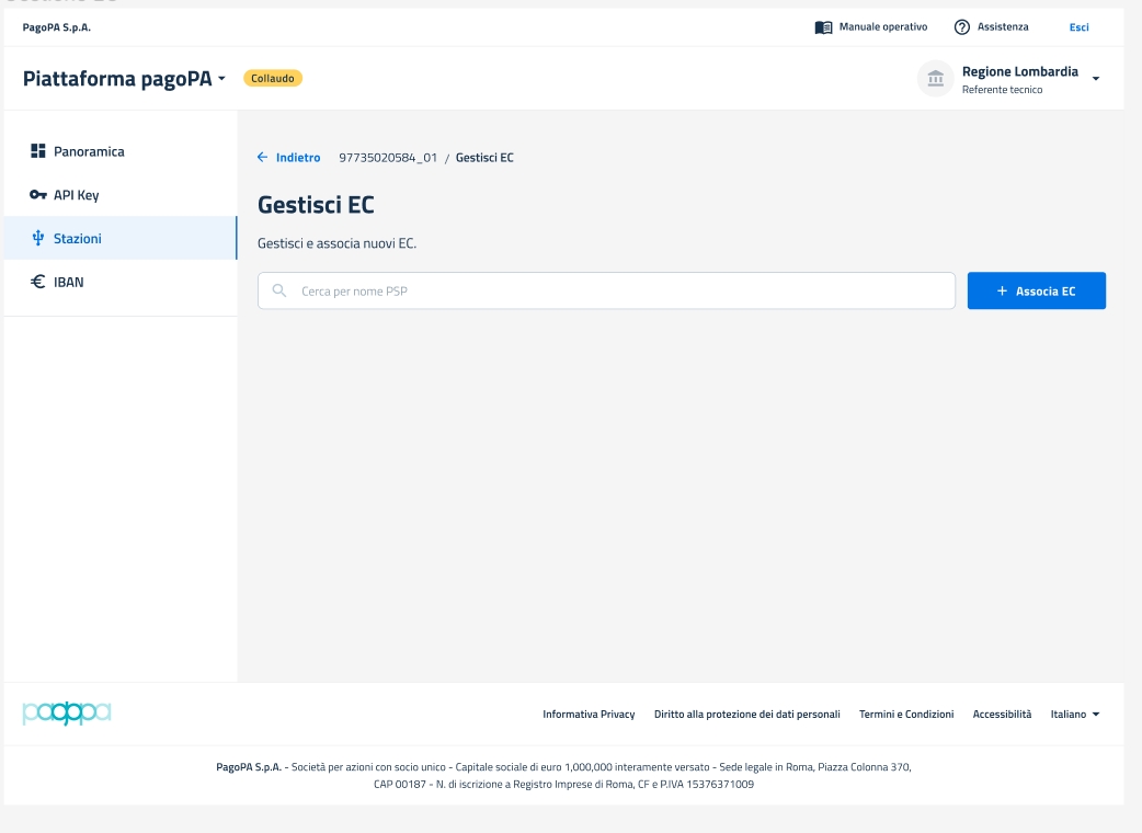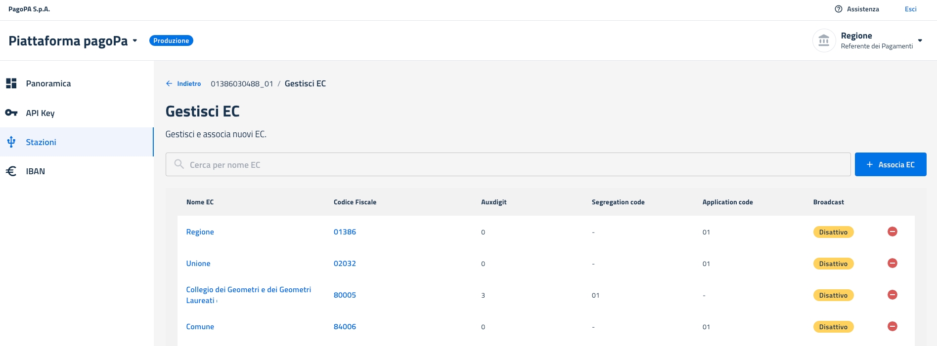 Questa funzionalità consente al PT di associare alla propria stazione un ente che ne abbia fatto richiesta. Tramite tale stazione, l'ente potrà connettersi al Nodo dei Pagamenti PagoPA.
