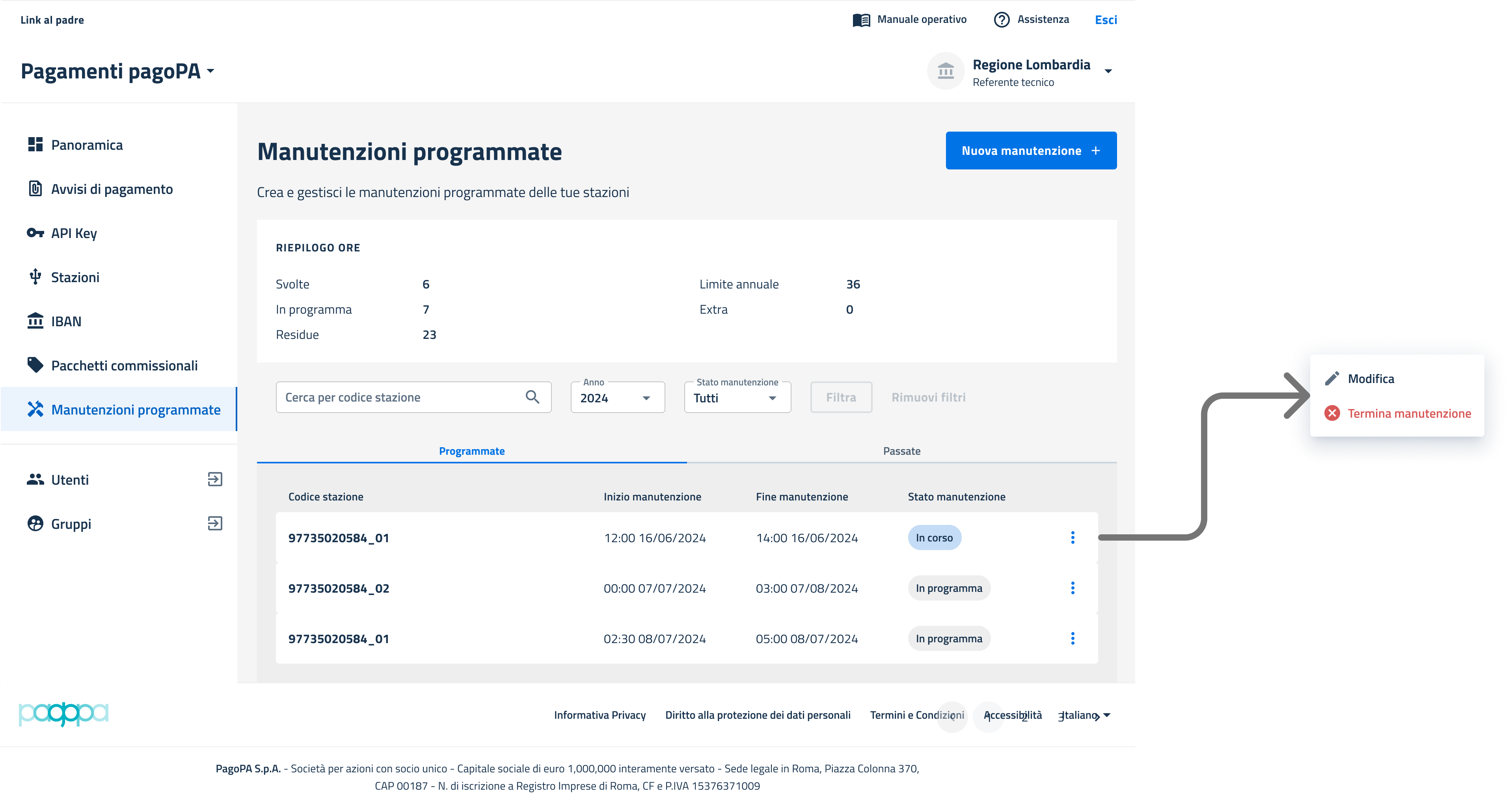 Questa funzionalità permette di gestire le manutenzioni programmate per le stazioni.&#x20;