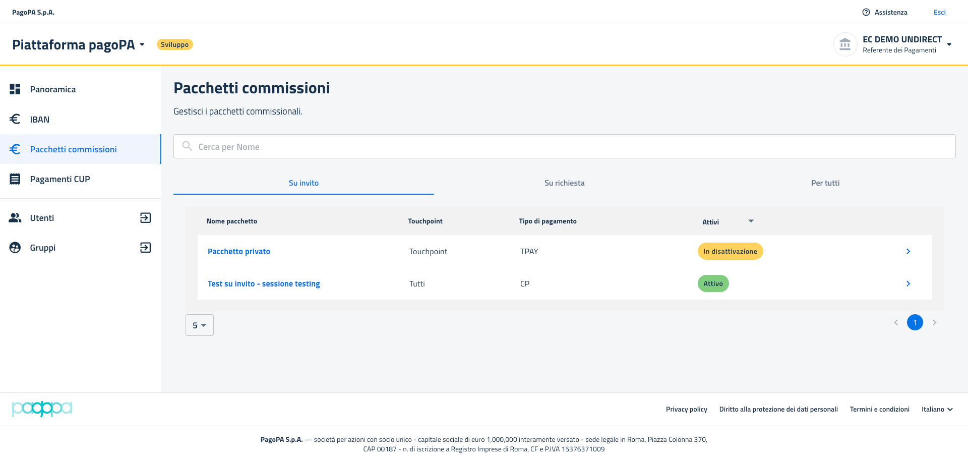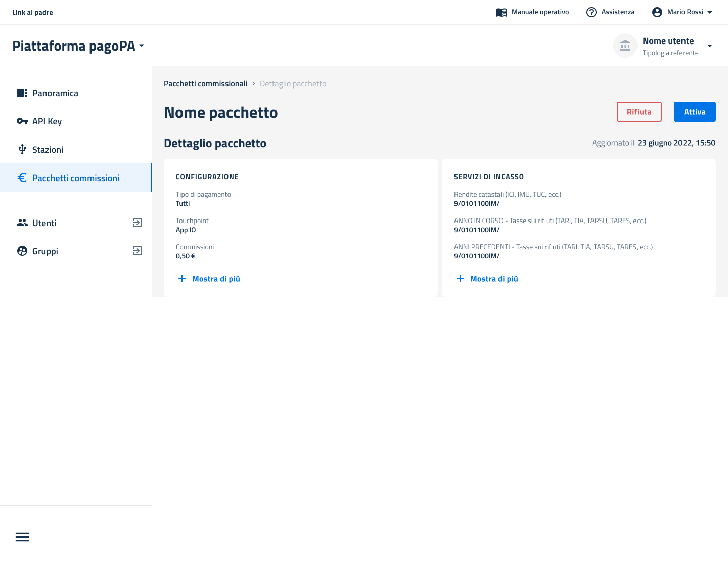 Accedendo al dettaglio di un pacchetto presente nella lista dei pachetti nello stato `"Da attivare"` (vedi sezione[ Visualizza dettaglio](https://docs.pagopa.it/manuale-back-office-pagopa/readme/funzionalita/gestione-evoluta-commissioni/pacchetti-su-invito/gestione-pacchetti-su-invito/visualizza-dettaglio)), è possibile procedere all'attivazione del pacchetto da parte di un EC.