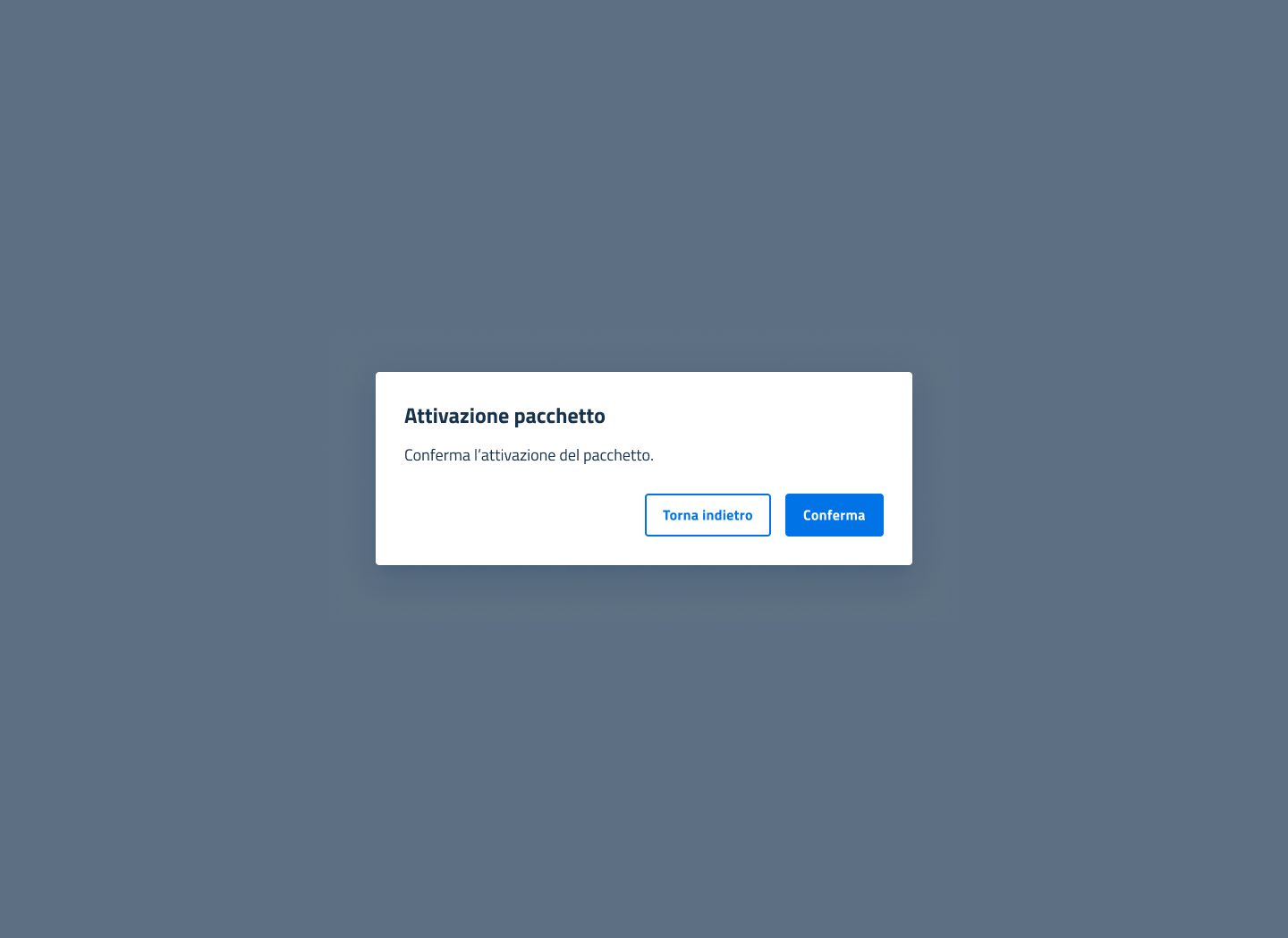 Cliccando sul tasto `"Conferma"` si conferma l'attivazione del pacchetto che viene visualizzato nella lista dei pacchetti disponibili nello stato `"Attivo"`.