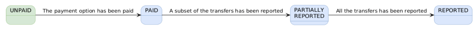 Transizione a REPORTED: Stato raggiunto al termine della fase di rendicontazione, una volta riconciliati tutti i versamenti (Transfer) associati alle opzioni di pagamento.