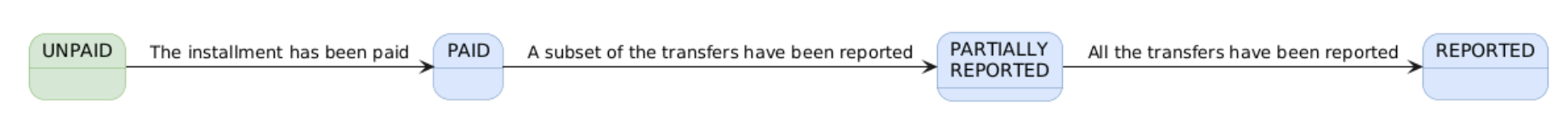 Transizione a PARTIALLY_PAID: Il pagamento parziale di una parte degli Installment (i.e. Rate) determina la transizione della posizione allo stato PARTIALLY_PAID.