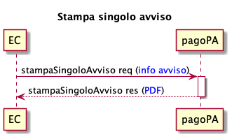 L’EC invia tutte le informazioni necessarie alla stampaSingoloAvviso, come indicate nella sezione Informazioni richieste per la stampa dell'avviso di pagamento;