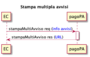 L’EC invia tutte le informazioni necessarie alla stampaMultiAvviso, come indicate nella sezione Informazioni richieste per la stampa dell'avviso di pagamento;
