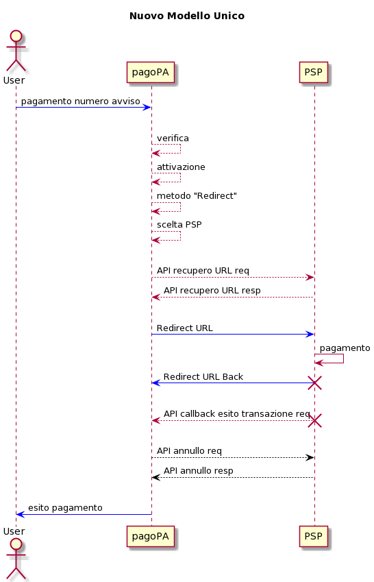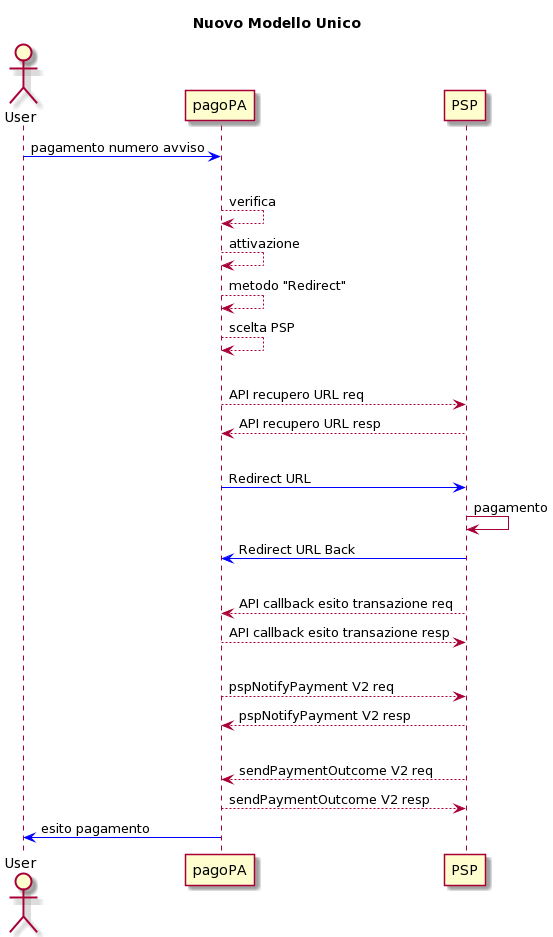 API recupero URL: esposta su rete pubblica dal PSP ed invocata dalla piattaforma pagoPA per recuperare la URL che il browser dell’utente utilizzerà per atterrare in modalità redirect, veicolando in anticipo al PSP informazioni sul pagamento che sarà effettuato;