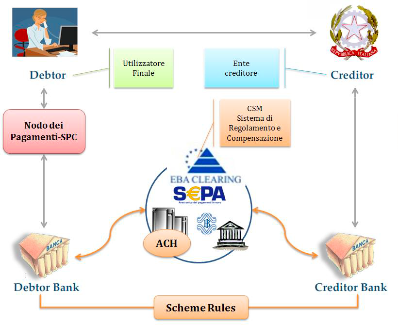 Il perfezionamento delle operazioni disposte tramite la piattaforma pagoPA avviene attraverso il sistema di regolamento e compensazione (CSM) utilizzando le regole SEPA.