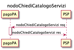 Il Catalogo servizi è utilizzato dai PSP per ottenere i dettagli di particolari servizi offerti da ogni EC, in modo da poter offrire il pagamento spontaneo (Pagamento spontaneo presso PSP), tale struttura può essere prelevata tramite la primitiva nodoChiediCatalogoServizi.